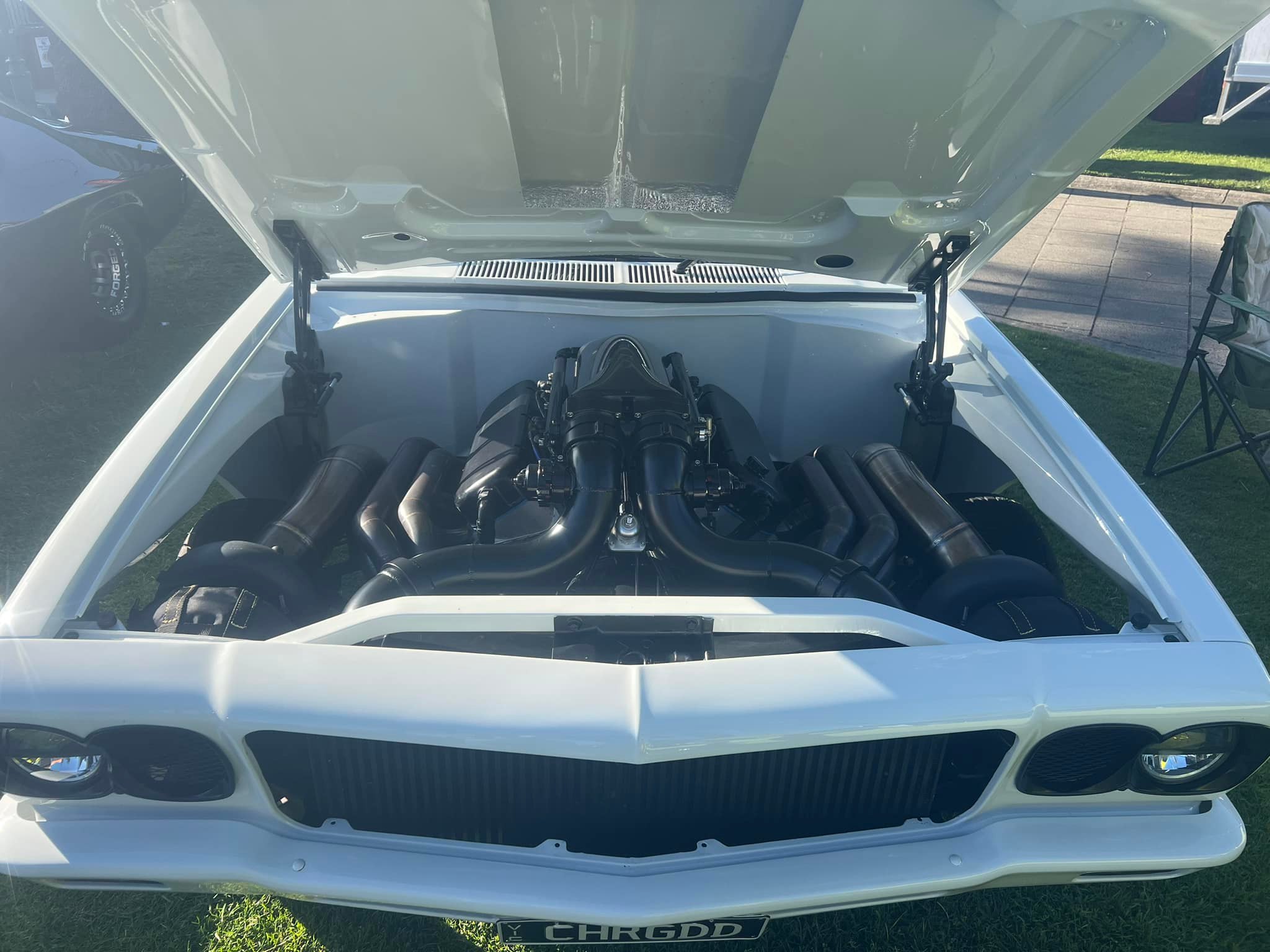 The Quey runs a Dandy-built, Dart-blocked 540ci big-block Chev with AFR heads and twin Precision 88mm turbos, backed by an M&M transmission. Dan Szabolics put the car together for Darren, and it runs a similar combo to the twin-turbo fatty in Dan’s own HQ, which is set to join the Horsepower Heroes party tomorrow.